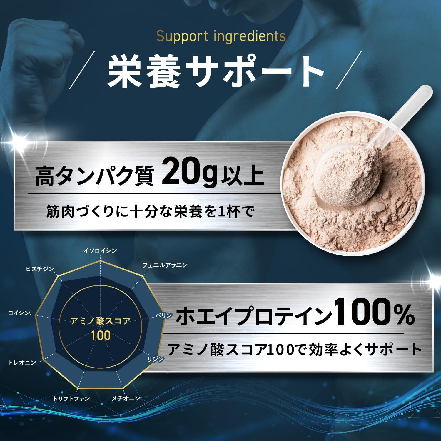 【成長をサポートする設計】アミノ酸スコア100を実現し、EAA・BCAAを豊富に含むホエイプロテインです。トレーニング後のリカバリーを効率的にサポートします。