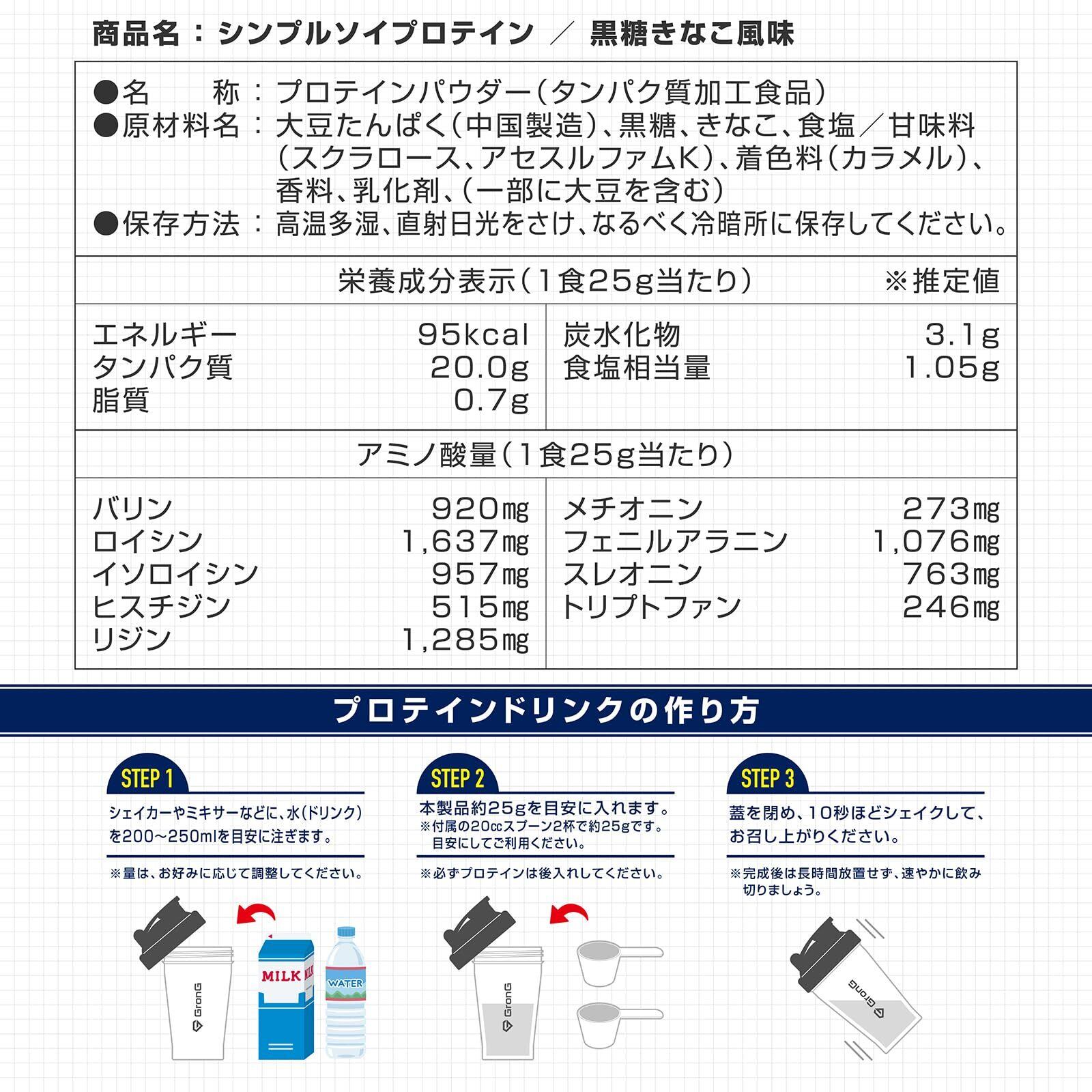 グロング ソイプロテイン 1kg 黒糖きなこ風味 プロテイン ソイ 大豆プロテイン 植物性 シンプルソイプロテイン