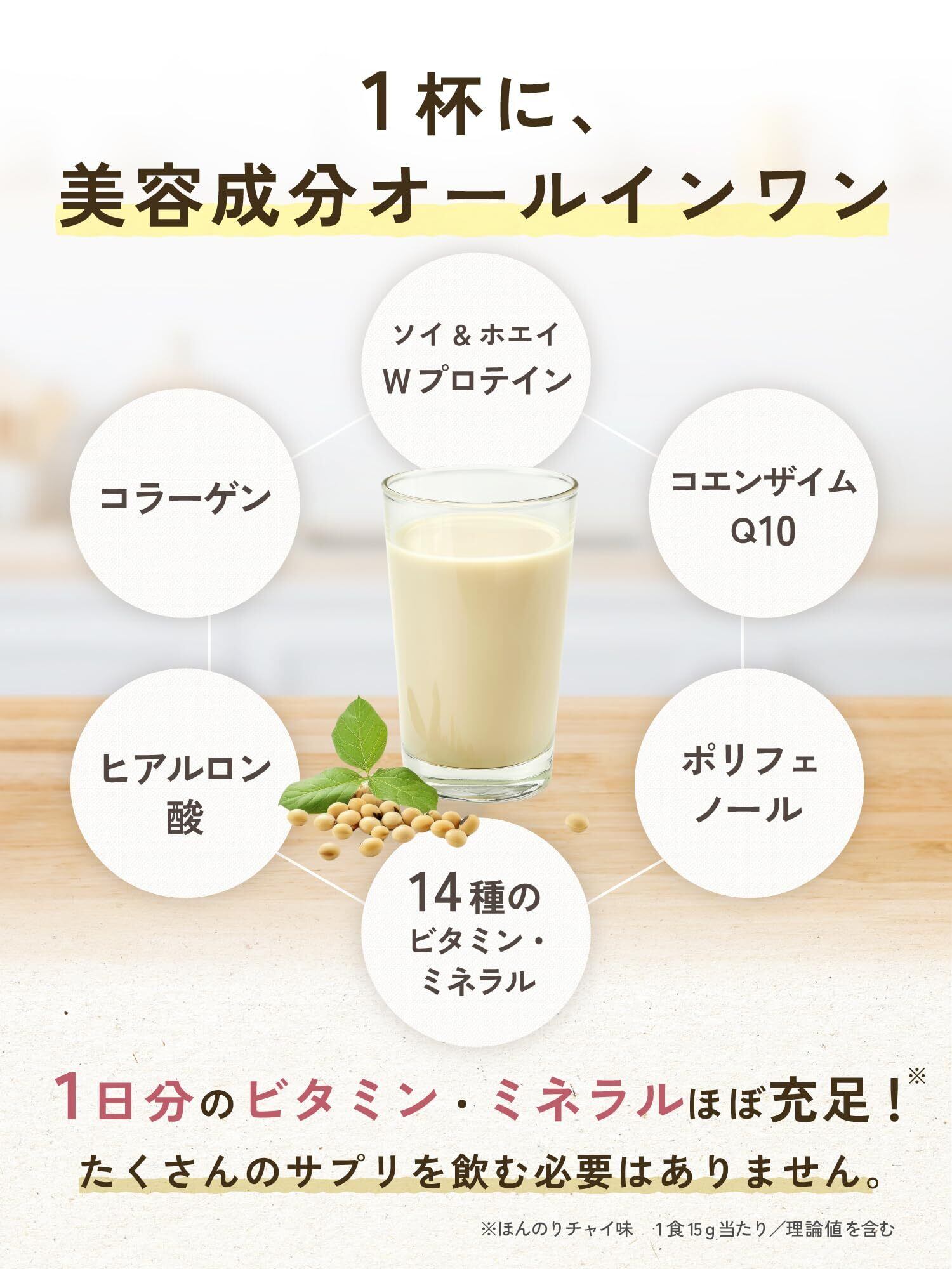 【女性のための美容プロテイン】 ホエイ×ソイのWプロテインに、コラーゲン・ヒアルロン酸・アサイー・赤ワインエキス末など25種以上の美容成分を配合。たんぱく質と美容成分が一度に摂れる、女性向けプロテインです。