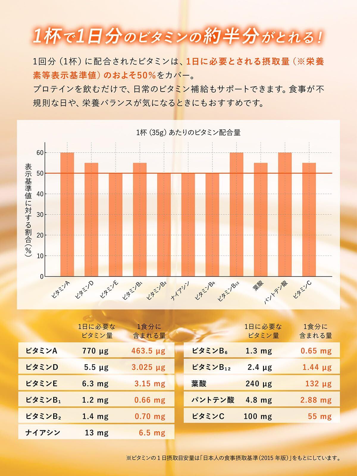 【ビタミン11種類配合】ビタミンB群を含む11種類を1食(35g)で1日の半分量を摂取出来るよう配合。