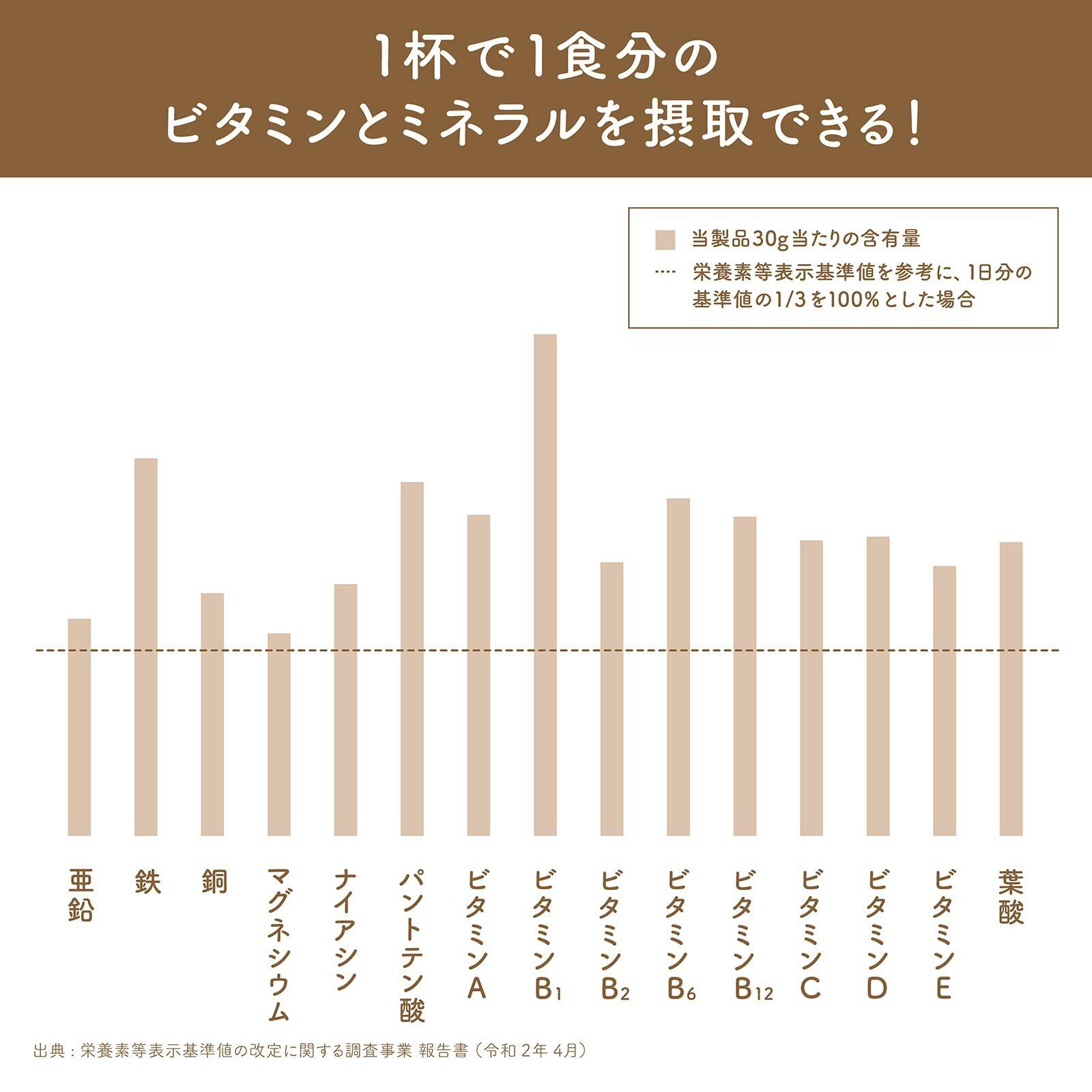 【オールインワンのプロテイン】1食 (30g) 当たり、18.5gのたんぱく質、3.1gのコラーゲンペプチド、11種類のビタミン、9種類のミネラル、その他栄養素が摂取可能!