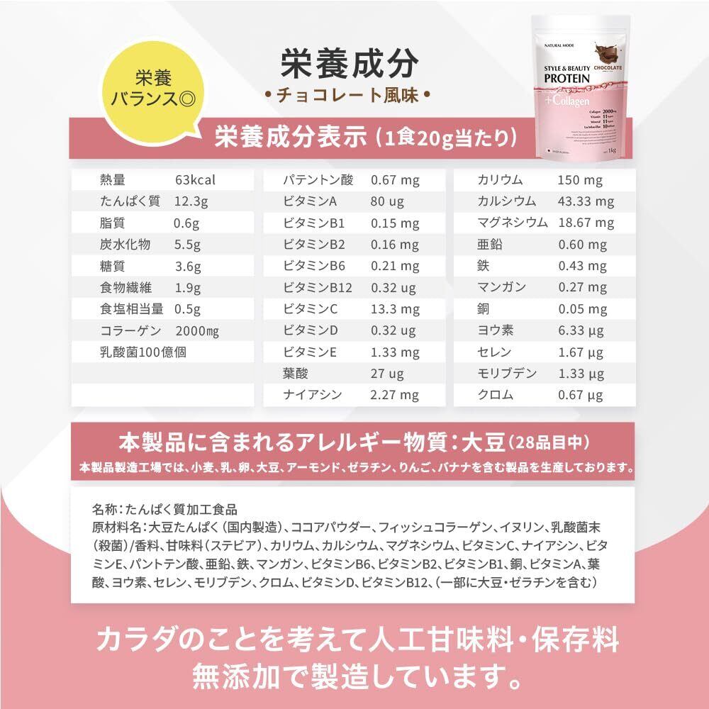 ビューティープロテイン 1kg 人工甘味料不使用 女性向け コラーゲン ソイプロテイン (1kg, チョコレート風味)