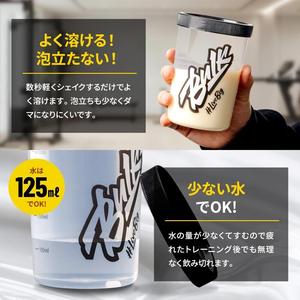 【少ない水でよく溶ける】ビッグホエイを溶かすのに必要な水の量はわずか125~150ml。水に溶けやすいパウダーのため、疲れたトレーニングの後にもストレスなく素早く、無理なく飲み切ることができます。