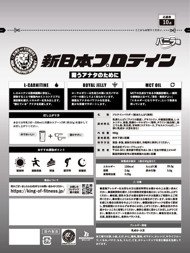 新日本プロテイン (バニラ味, 450g) プロテイン ぷろていん ホエイプロテイン Produced by 棚橋弘至選手
