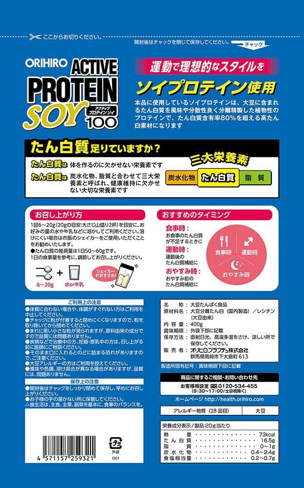 オリヒロ アクティブプロテインソイ100 400g ソイプロテイン 大豆