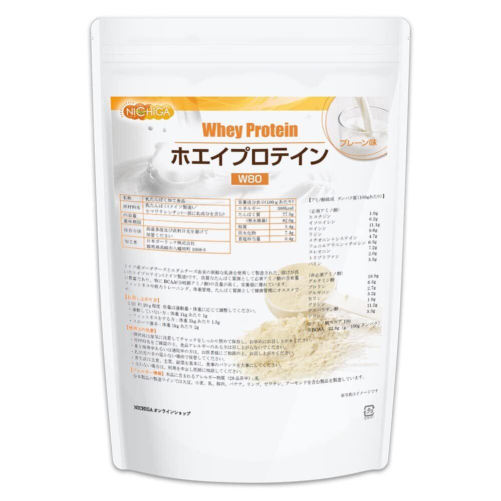NICHIGA(ニチガ) ホエイプロテインW80 プレーン味 1kg〔牛成長ホルモン不使用〕甘味料不使用 たんぱく質豊富TK0