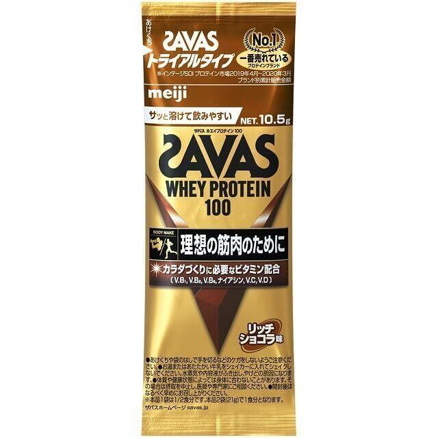 セット内容 ココア味2袋 / リッチショコラ味2袋 / 抹茶味2袋 / ヨーグルト味2袋 / バニラ味 2袋 / 専用シェイカー1個 / オリジナルレジ袋1枚 理想の筋肉のために。おいしく飲みやすいスタンダードなプロテイン。 たんぱく原料として、吸収の良い「ホエイプロテイン」を100%使用しています。トレーニング直後などのプロテイン摂取ポイントに合わせてたんぱく質を補給できるので、理想的なカラダづくりをサポートします。 原材料名(ココア味のものとなります。) 乳清たんぱく(外国製造)、ココアパウダー、植物油脂、デキストリン、食塩/乳化剤、香料、V.C、増粘剤(プルラン)、甘味料(スクラロース、アセスルファムK)、V.B2、V.B6、V.B1、ナイアシン、V.D、(一部に乳成分・大豆を含む) 要栄養成分 1袋(10.5g)当たり エネルギー・・・42kcal たんぱく質・・・7.5g 脂質・・・0.7g 炭水化物・・・1.3g 食塩相当量・・・0.07~0.22g ナイアシン・・・1.8~5.0mg ビタミンB1・・・0.25mg ビタミンB2・・・0.29mg ビタミンB6・・・0.21mg ビタミンC・・・16mg ビタミンD・・・4.6μg