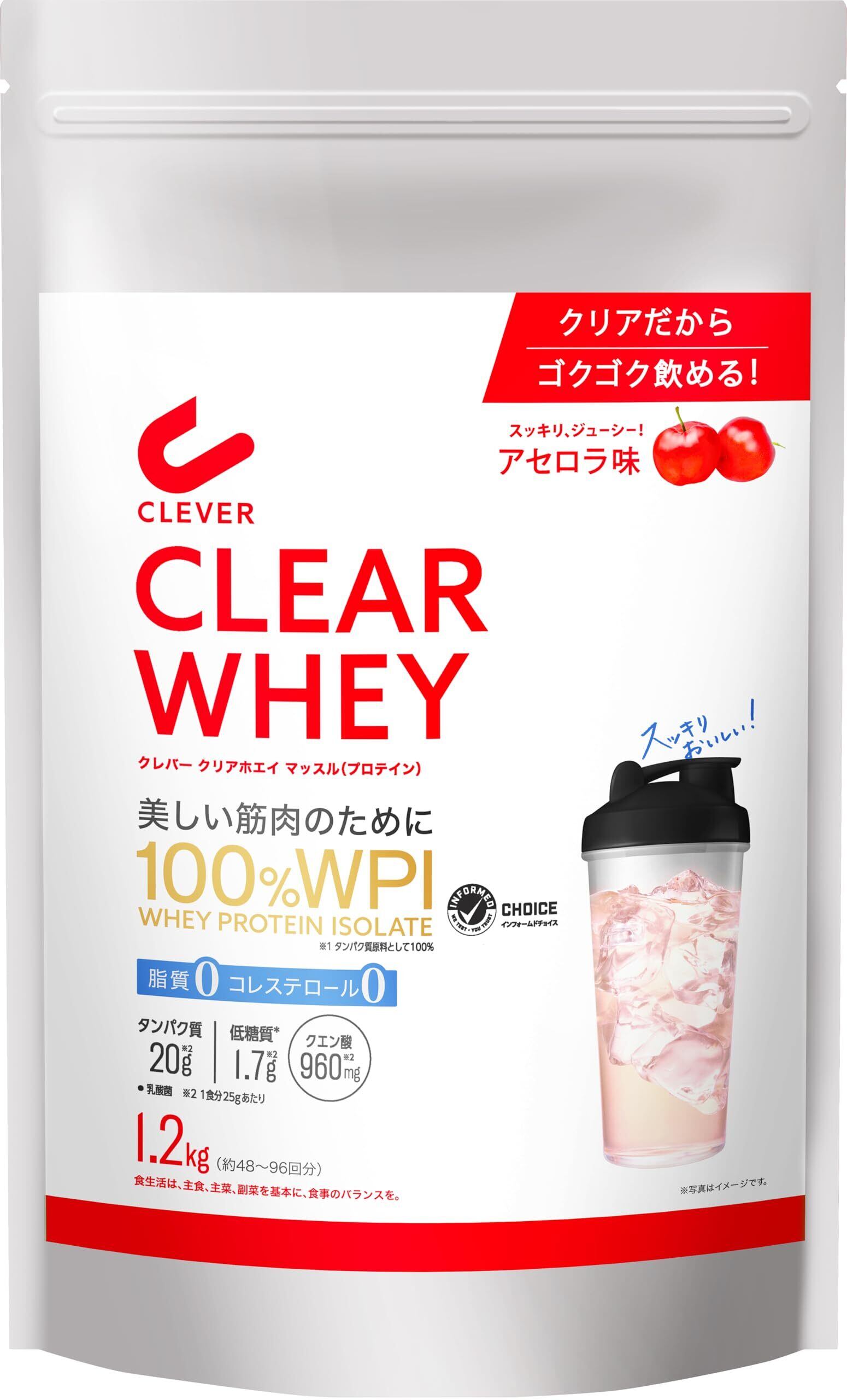 クレバー クリア ホエイ プロテイン [WPI100%] マッスル アセロラ味 大容量1.2kg [脂質ゼロ・コレステロールゼロ]