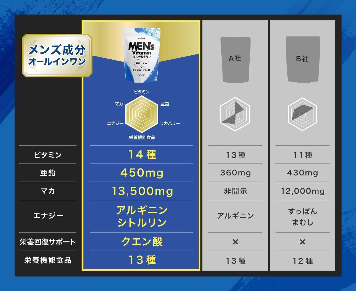アンビーク メンズマルチビタミン 亜鉛 マカ 錠剤 ビタミン14種 クエン酸 アルギニン シトルリン 即効チャージ 持続型 栄養機能食品 ビオチン (通常サイズ×1袋)