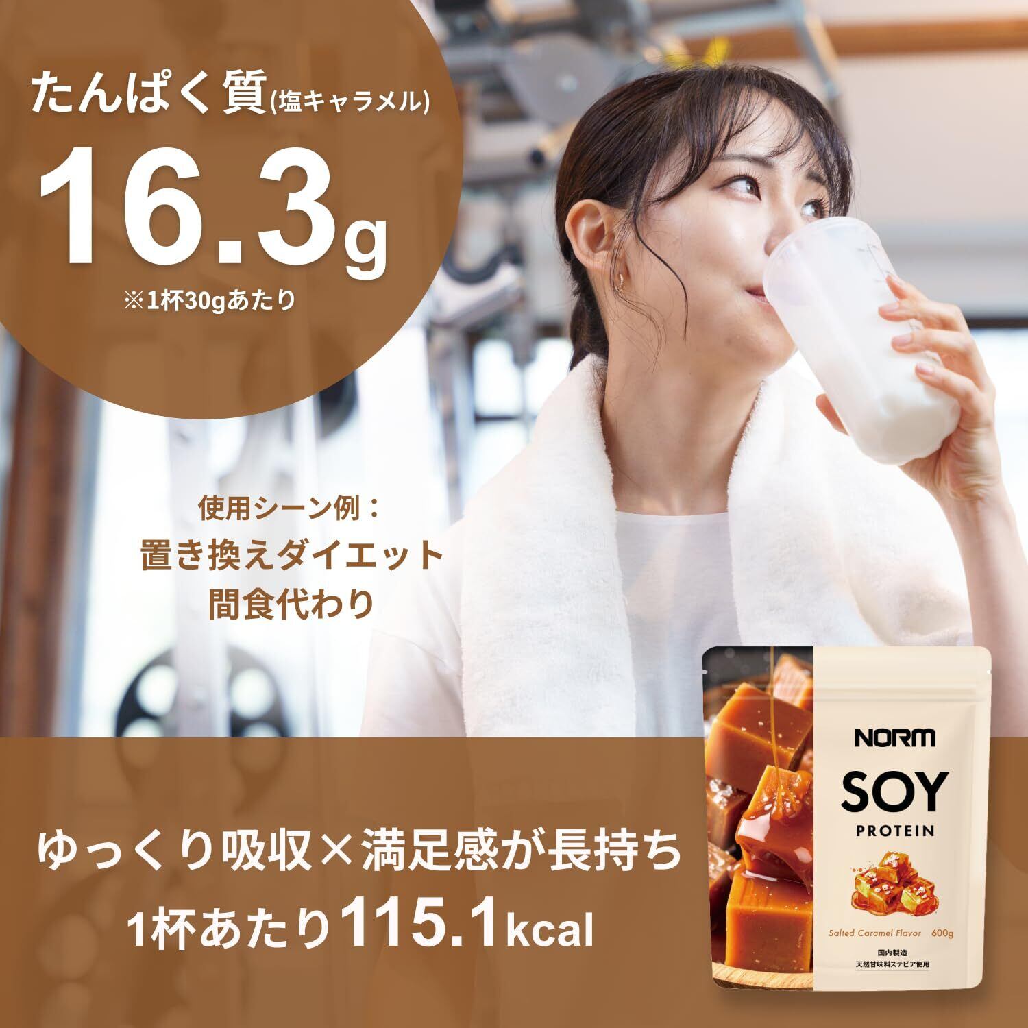 NORM ソイプロテイン 塩キャラメル味 600g 植物性大豆プロテイン100% アミノ酸スコア100 低脂質 高たんぱく 人工甘味料不使用 国内製造 ダイエット 筋トレ 女性 男性
