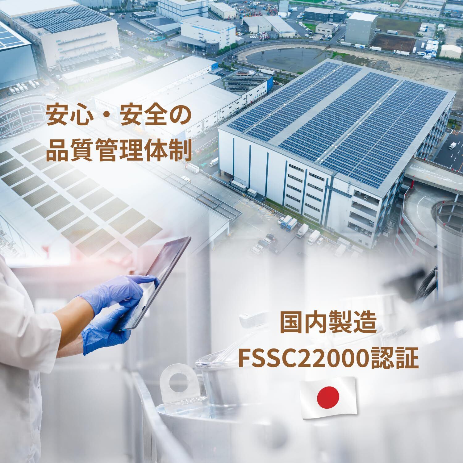 【人工甘味料不使用&国内製造】 体に優しい原料にこだわり、安心の国内製造。品質管理はFSSC22000認証工場で徹底。