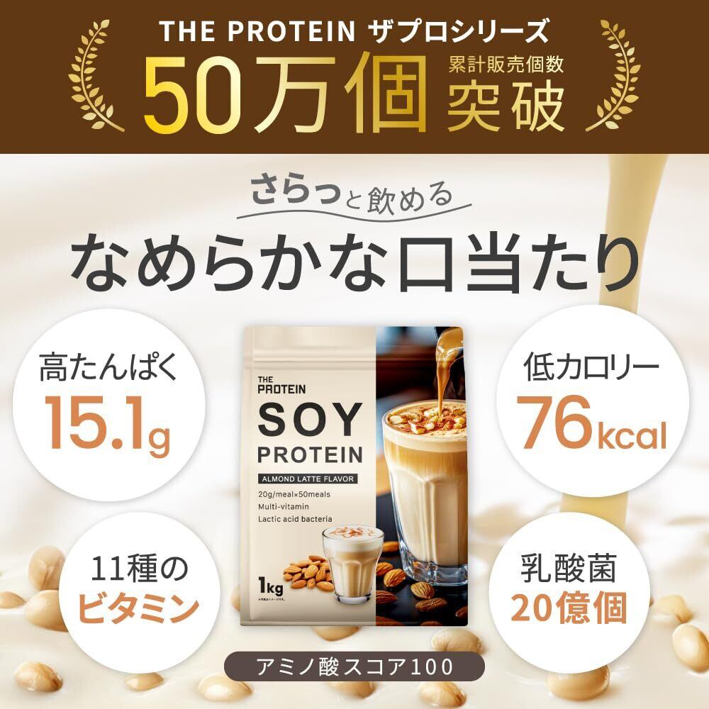 ザプロ ソイプロテイン アーモンドラテ風味 1kg ビタミン 11種 大豆プロテイン 国内製造 低糖質 低脂質 高タンパク 筋トレ 武内製薬 THE PROTEIN
