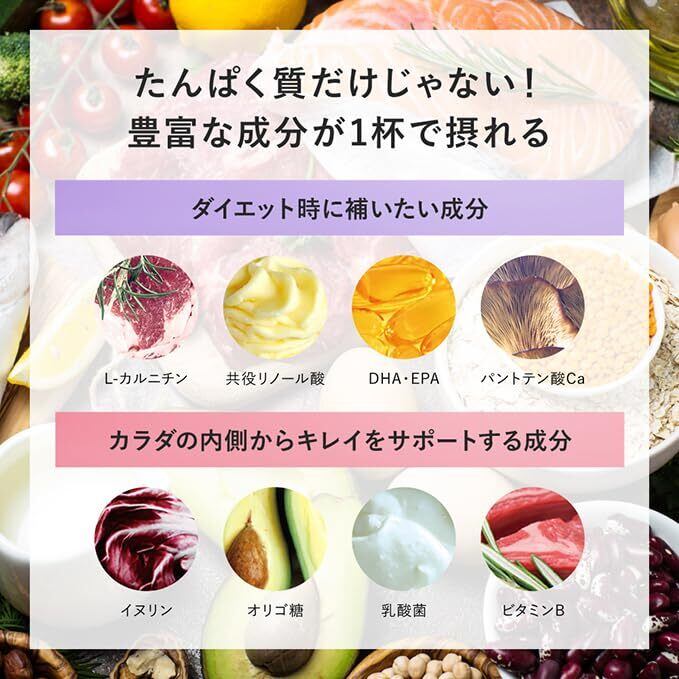 【開発者の想い】 FUJIMIのプロテインには1回あたり約20gのタンパク質が摂れる設計になっています。これは成人女性に推奨される基準摂取量の約1/3に相当します。 筋肉だけでなく、肌や髪を作るもとであるタンパク質をもっと美味しく、手軽にしっかり摂れるよう成分設計にこだわりました。