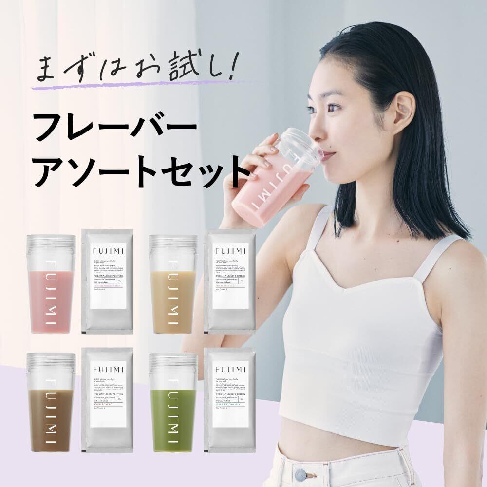 FUJIMI(フジミ)プロテイン アソート4種(ストロベリー/抹茶/ミルクティー/カカオ)お試しセット ホエイプロテイン ソイプロテイン 個包装 30g×4袋
