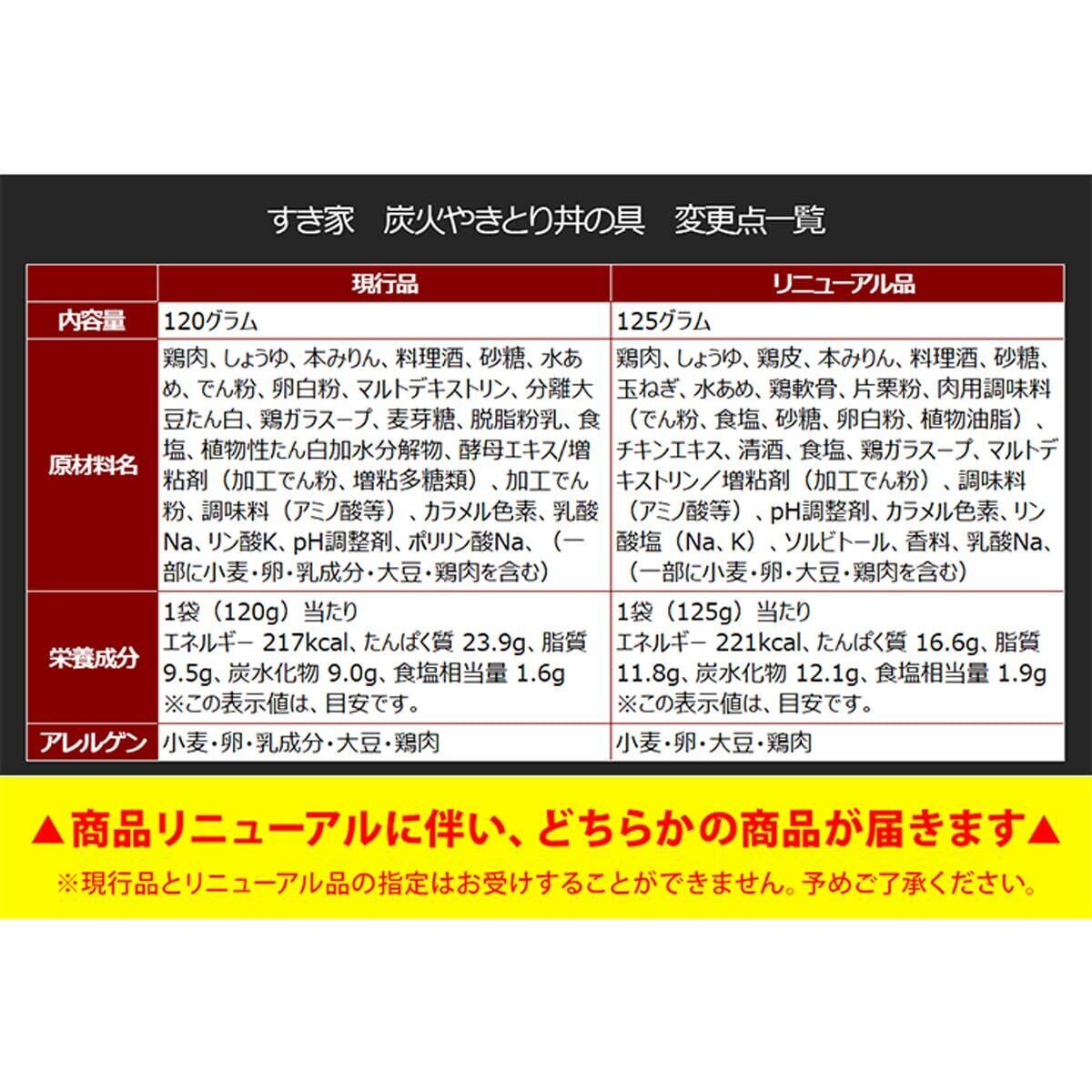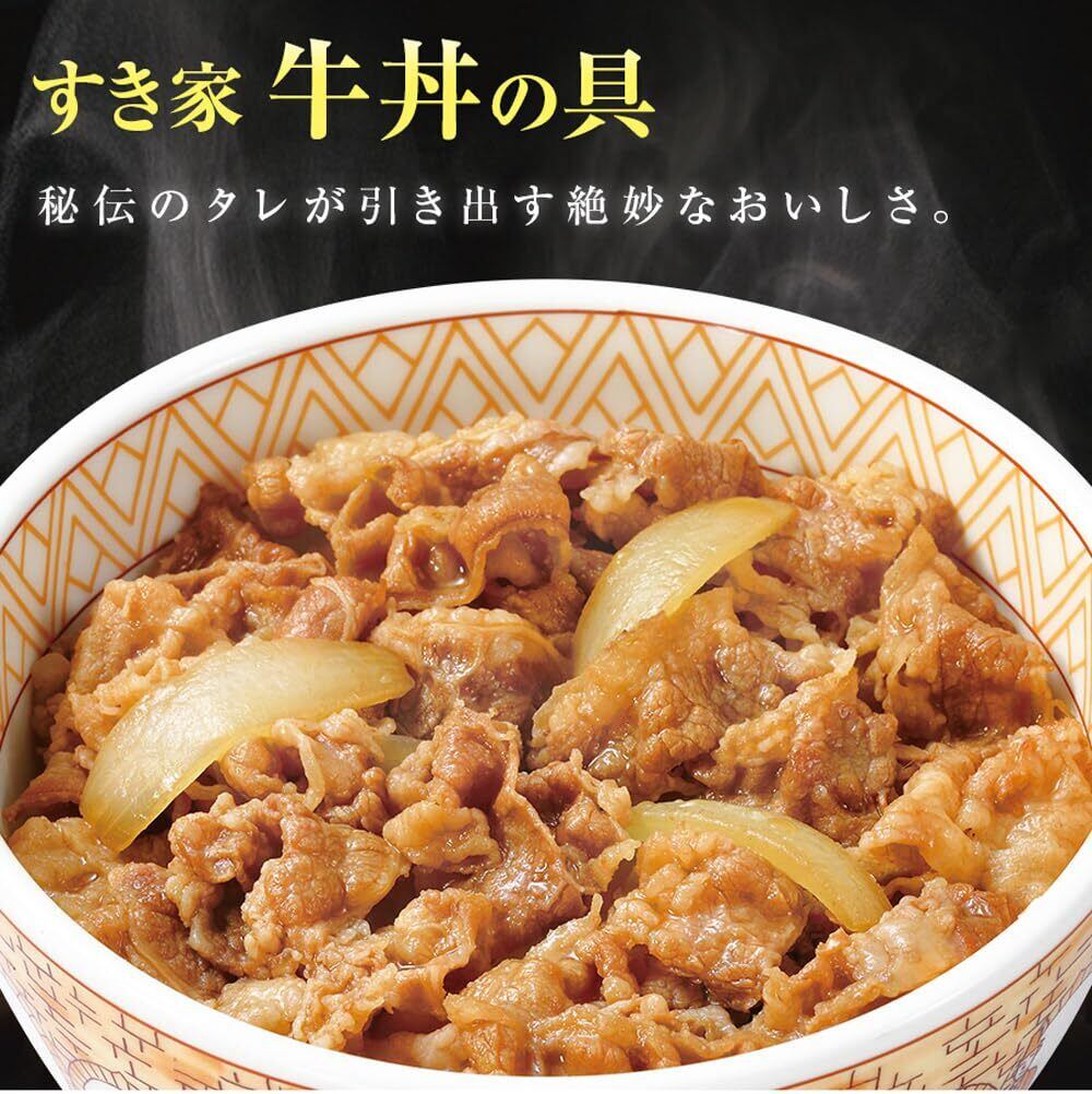 すき家「牛丼の具120g」「牛カルビ丼の具120g」「豚生姜焼き丼の具120g」「炭火やきとり丼の具120g」「横濱カレー220g」がそれぞれ4食ずつ、合計5種20食入りのお得なセットです。