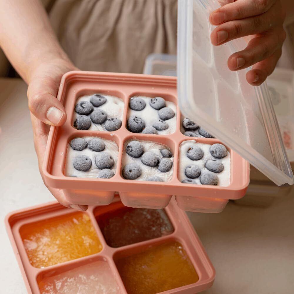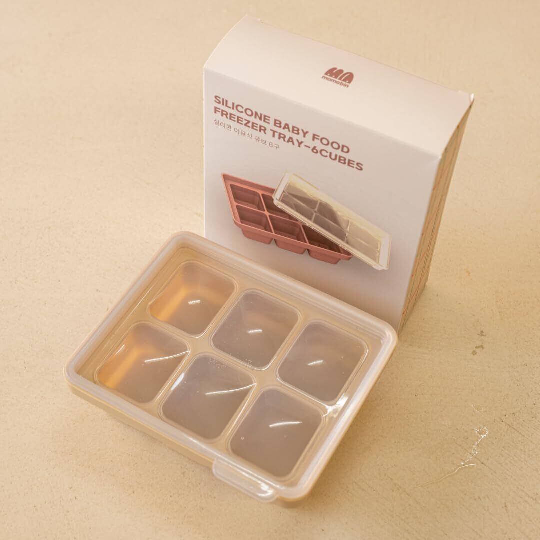 MOMOBIN シリコーン製 食品冷凍庫トレイ 韓国製 食事準備 冷凍食品保存キューブトレイ 蓋付き ピューレ、スープ、固形食品 フルーツ 植物性ブラストミルク用 簡単で安全なデザイン (Creme Brulee 6P)