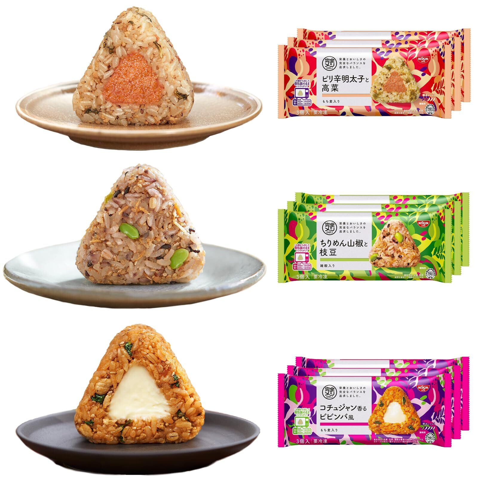 冷凍 完全メシ DELI 日清食品 おにぎり 冷凍おにぎり ピリ辛おにぎりセット ピリ辛明太子と高菜 ちりめん山椒と枝豆 コチュジャン香るビビンバ風 各3袋(3個入)×3種