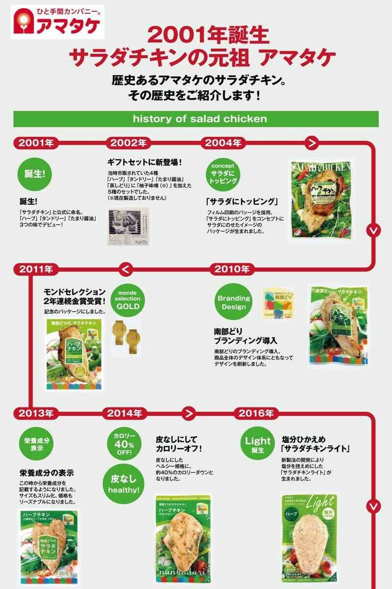 【バラエティー豊富な10種のフレーバー】アマタケ サラダチキンの個性豊かな10種の味で展開!定番の『1枚肉シリーズ』や食べやすい『練肉シリーズ』、それぞれお好みのフレーバーを楽しんでいただけます。
