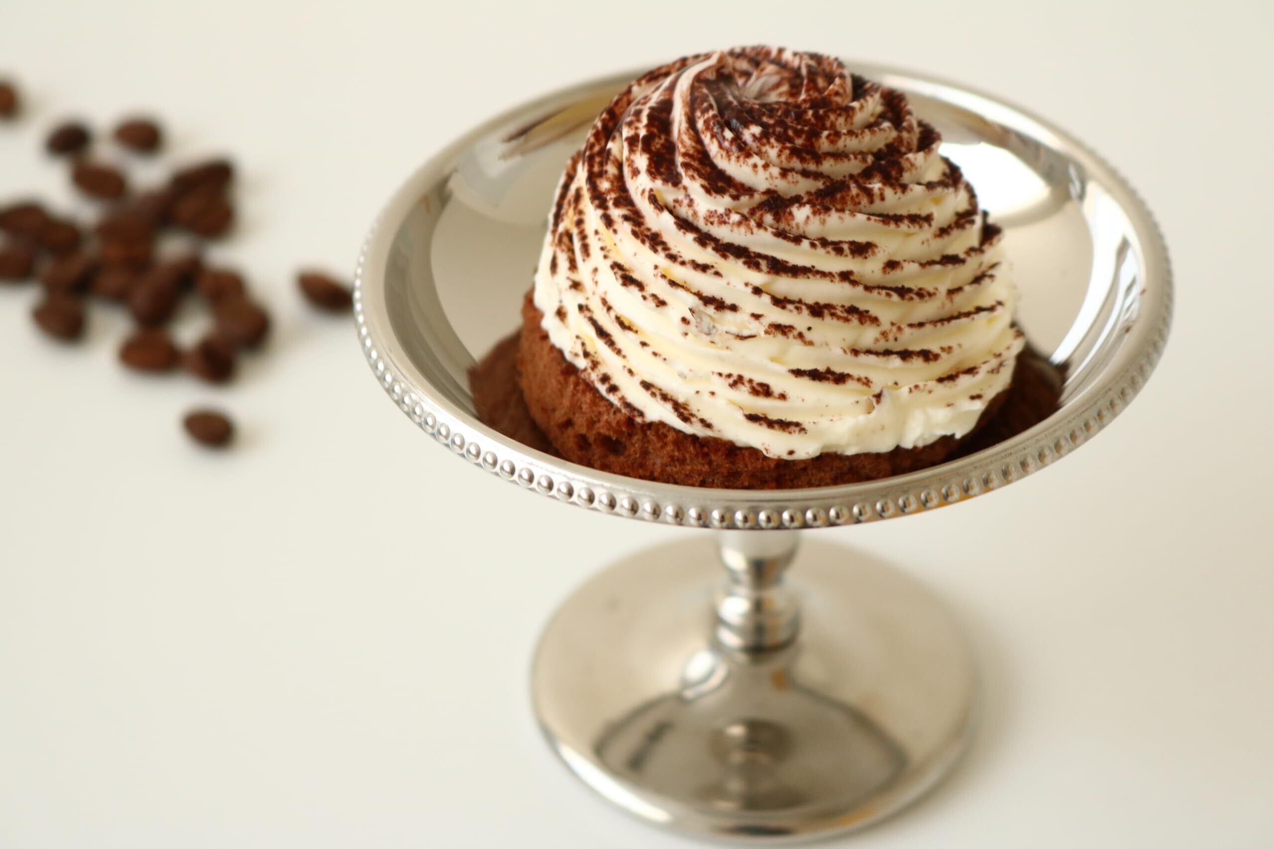 ココアスポンジにコーヒーシロップをしみ込ませ、イタリア産マスカルポーネを配合した絞りクリームのモンブラン