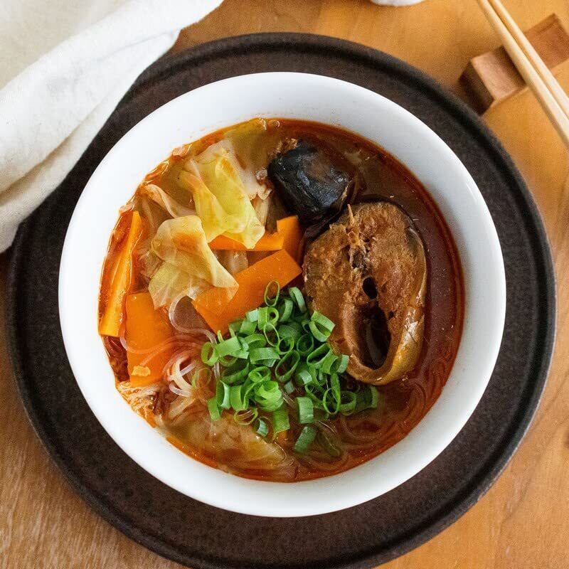 原材料:さば(国産)、ソテーオニオン、砂糖、なたね油、水あめ、ラー油、豆板醤、みそ、しょうゆ、乾燥オニオン、ガーリックパウダー、香辛料、魚醤、フライドガーリック、カレー粉、鰹節粉末、トウチミソ、食塩、玉葱外皮粉末/香辛料抽出物、トウガラシ色素、(一部にさば・ごま・大豆・小麦を含む)