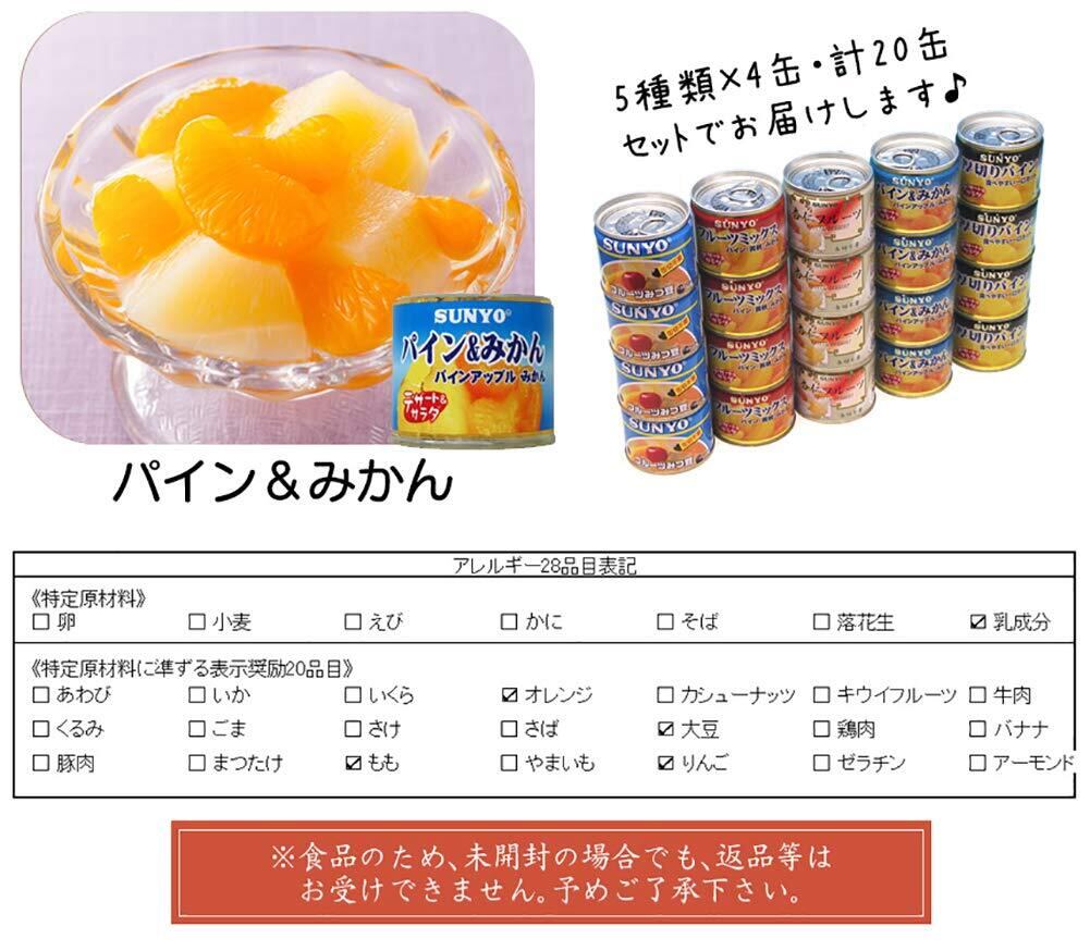 暮らしの幸便 サンヨー 缶詰 フルーツ 20缶セット 【5種×各4缶】 サンヨー堂 SUNYO みかん みつまめ パイン フルーツミックス 防災食 非常食 保存食 果物 みつ豆