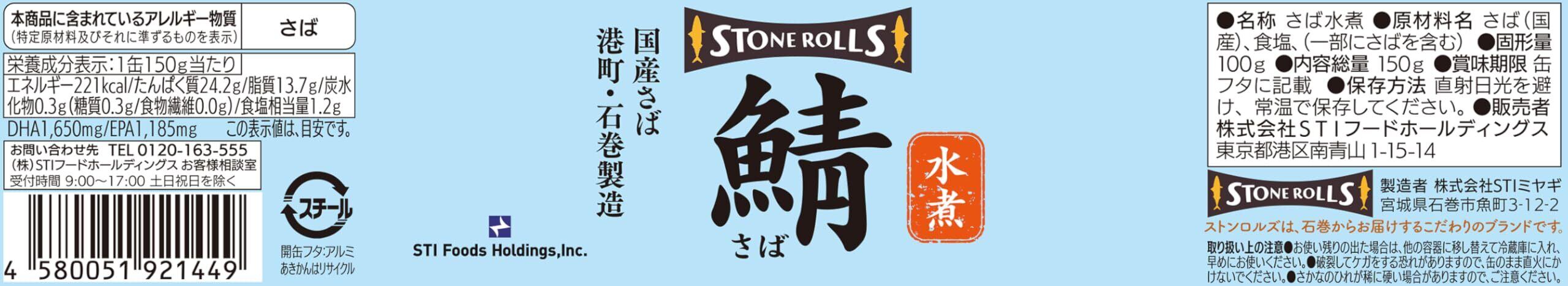 STONE ROLLS(ストンロルズ)国産さば水煮 150g (24缶セット)