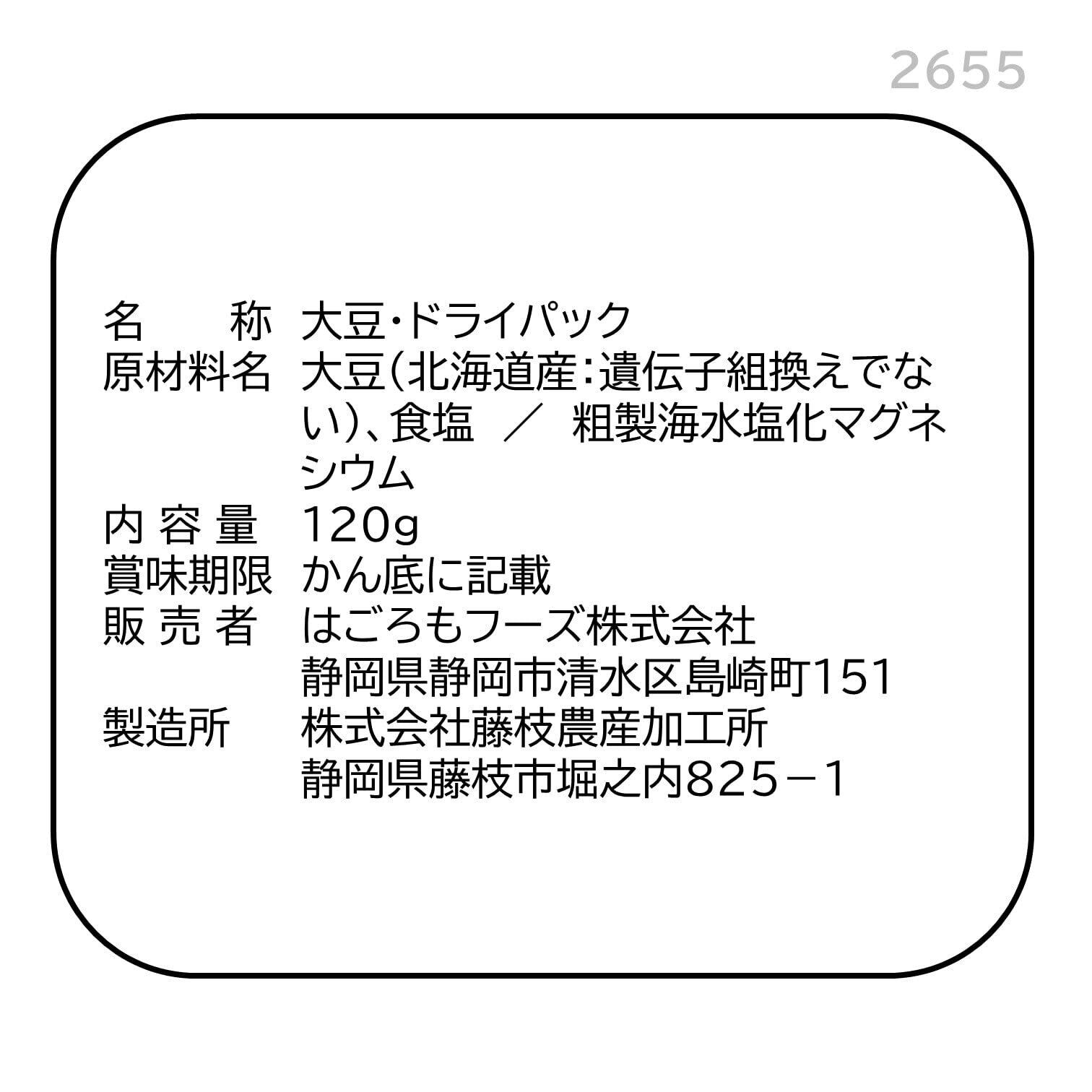 大豆は北海道産とよまさりを100%使用しています。ドライパック製法で、素材の風味やおいしさを逃しません。