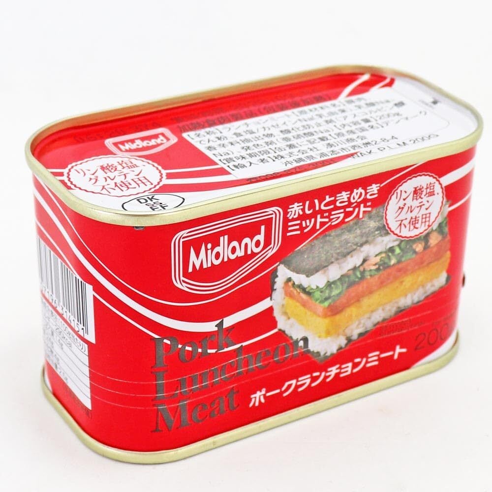 ランチョンミートを代表するデンマークTULIP社の自信作、ミッドランドランチョンミートです。 使いやすい200gのNEWサイズが登場! リン酸塩、グルテン不使用! チャンプルーや焼いてパンに挟んでも,沖縄ご当地グルメポーク卵にも、GOOD! 厳選された豚肉を使用したランチョンミート