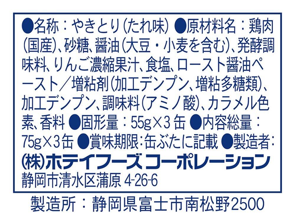 ホテイフーズ やきとりたれ味 3缶シュリンク 225g×2個