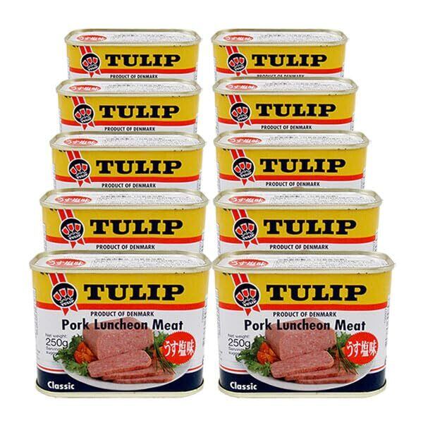 チューリップポークランチョンミート 250g + アートシール付き (10缶セット)