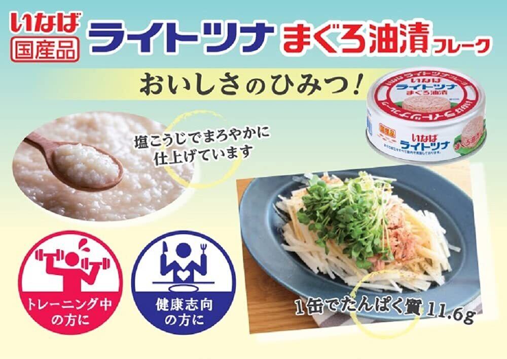 いなば食品 いなば 国産ライトツナフレーク まぐろ油漬 塩こうじ入り 3缶×3セット(計9缶)
