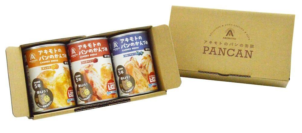 パン・アキモト パンの缶詰 防災 非常食 避難 賞味期限5年 乳酸菌 3種 詰め合わせ ブルーベリー オレンジ ストロベリー