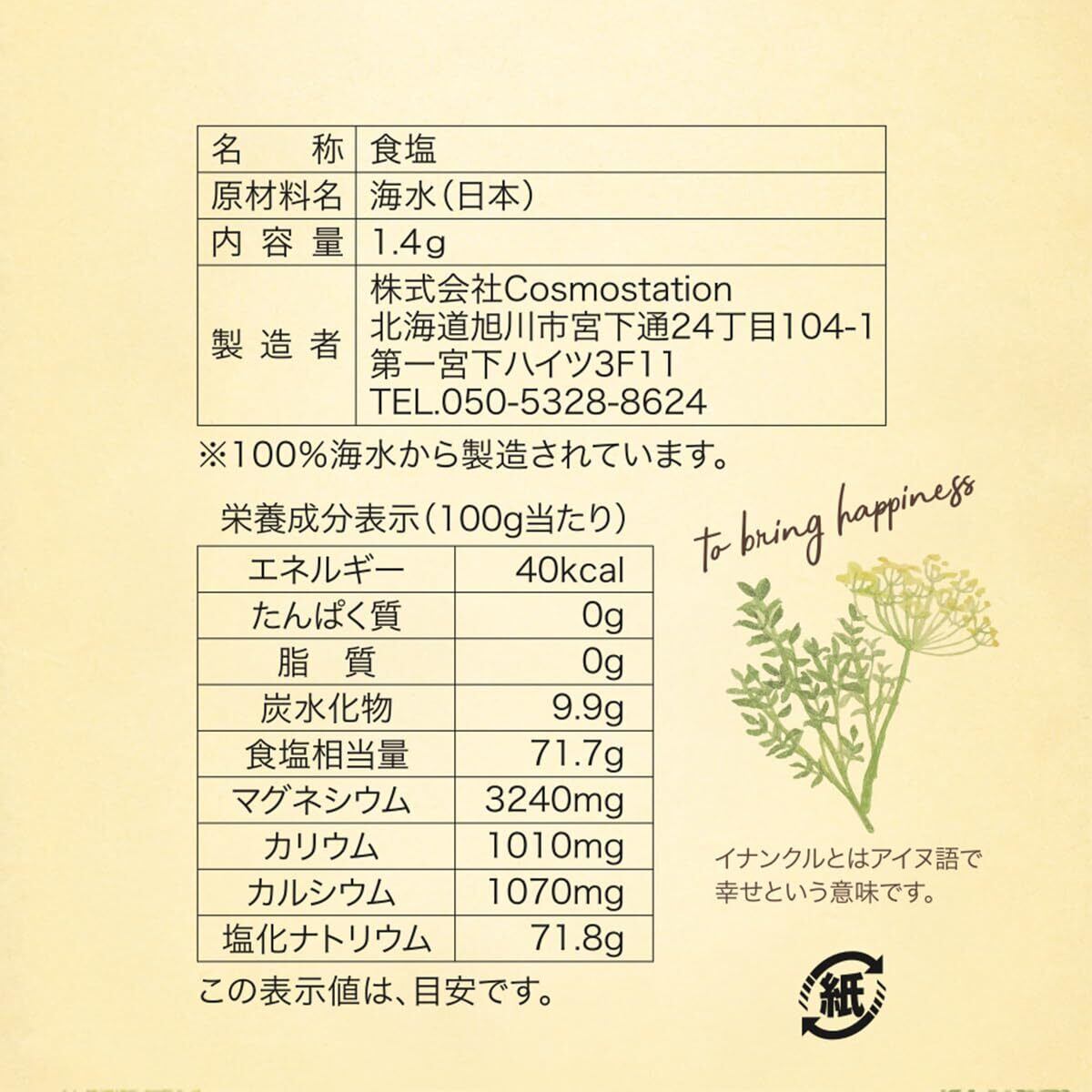 原材料名:紅鮭(アメリカ)、植物油、食塩、調味料(アミノ酸等)、イナンクル幸せを呼ぶ塩1個付属 ※原材料の一部に大豆を含む
