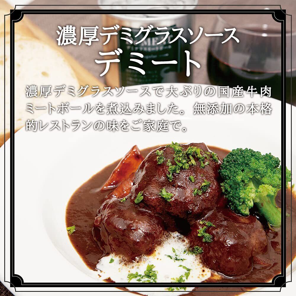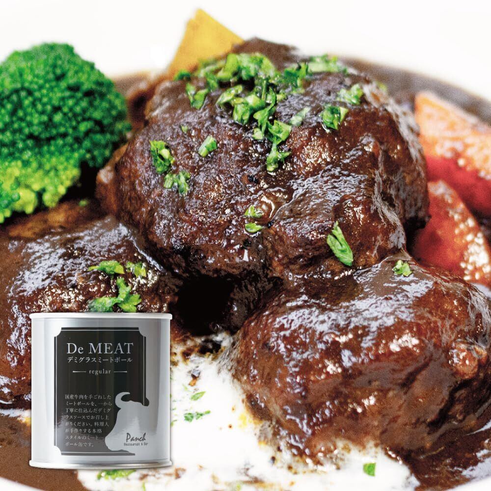 【お食事の場面や召し上がり方】ワイン好きのご夫婦の週末ディナーに、デミートはぴったりです。本格ミートボール缶は料理の主役にもなり、ご家庭でもレストラン気分を味わえる一品です。また、そのままでも食べる事ができるデミートは、キャンプ等での携帯用食品にもオススメです。賞味期限も1年間のため、非常食としてもご利用いただけます。そのままでも食べる事が出来ますが、缶のまま約5分間湯煎、または器に移してレンジで温めるとより美味しく召し上がれます。温める場合は容器に移して温めて下さい。濃厚なソースは、バケットやパスタにも相性抜群です。ワインとのペアリングによって、より美味しく召し上がれます。