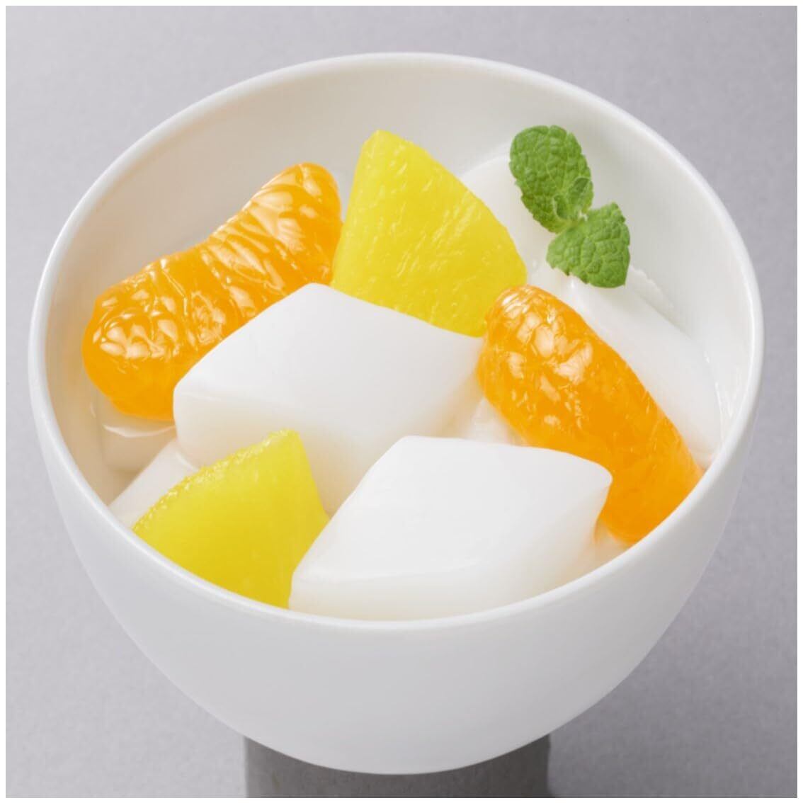 もちぷる食感の杏仁豆腐に色鮮やかなゴールデンパインとみかんを加えました。そのままでも、炭酸で割ってもお楽しみいただけます。