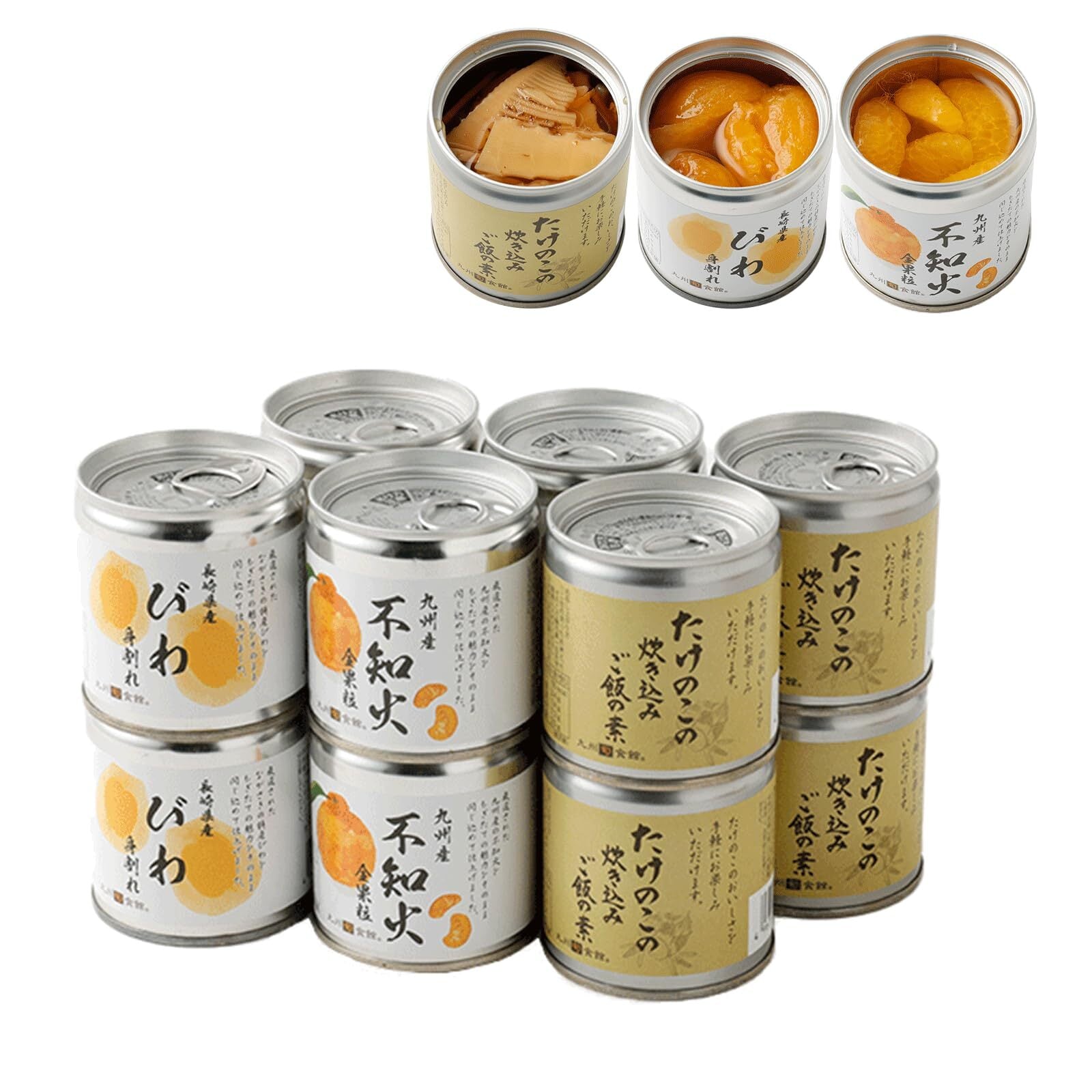 九州旬食館 缶詰セット 国産 (びわ身割れ缶詰・不知火缶詰・たけのこ炊き込みごはんの素) 各4缶 12缶セット ギフト お中元 暑中見舞い