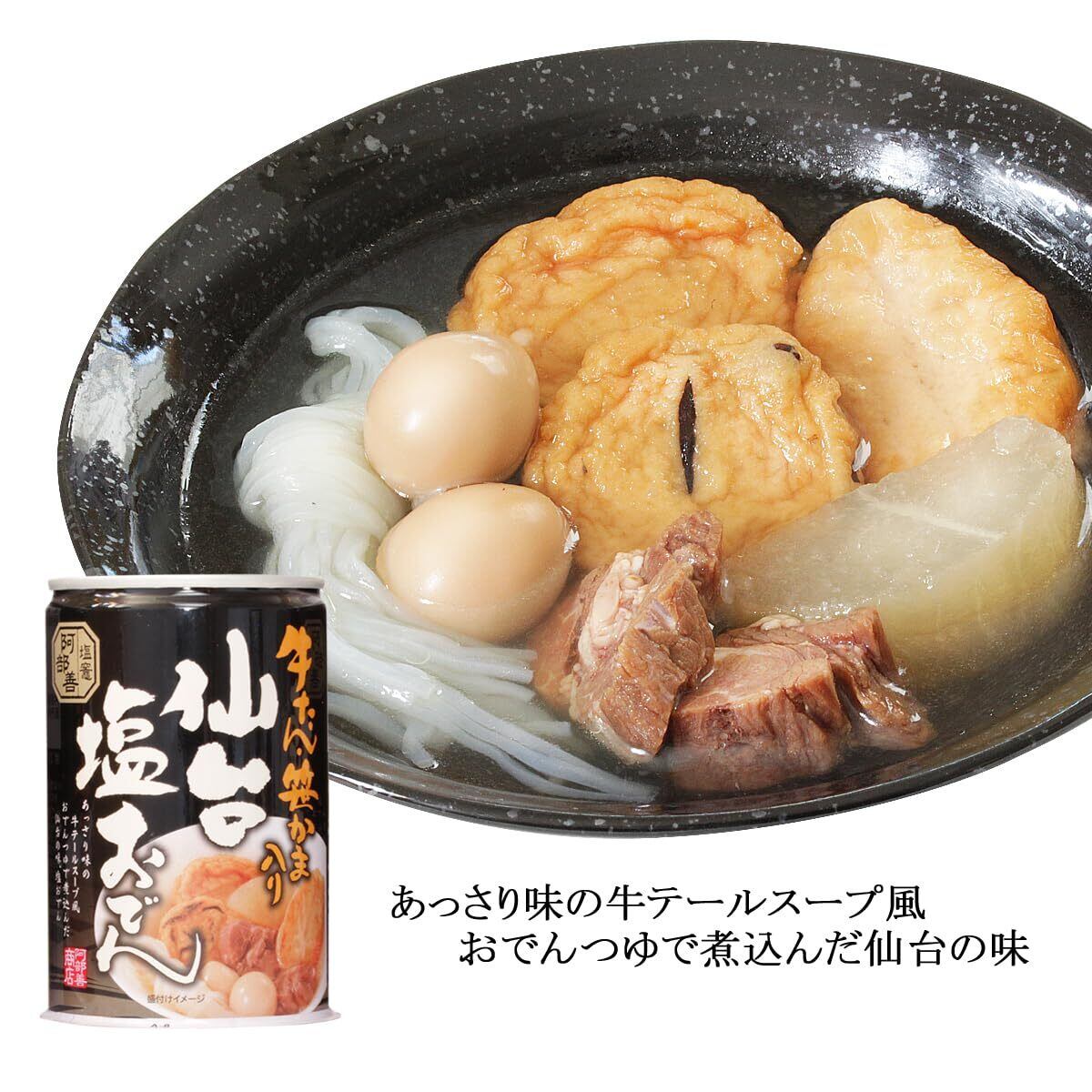 食べ物 ギフト 牛たん入り 笹かま入り 仙台 塩 おでん缶 アレンジレシピ付 おでん 缶詰 ダシ 塩釜 阿部善 おつまみ 土産 三陸 練り物 阿部善商店 ご飯のお供 セット 贈答 6缶
