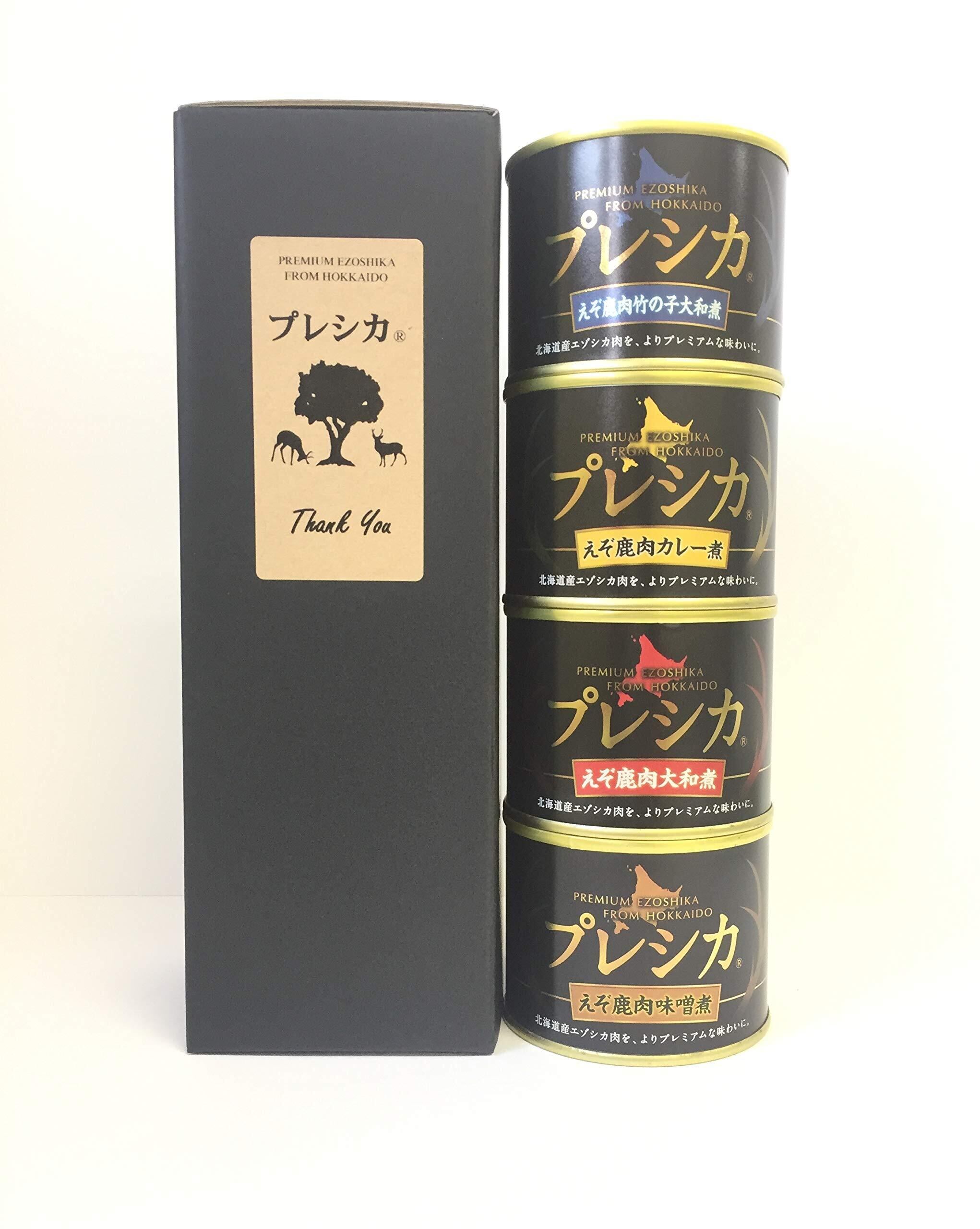北海道産 熟成鹿肉缶詰4種類セット(味噌煮 大和煮 カレー煮 竹の子大和煮) (北海道 エゾシカ 鹿肉 贈答品 イベント 景品 プレゼント お土産)