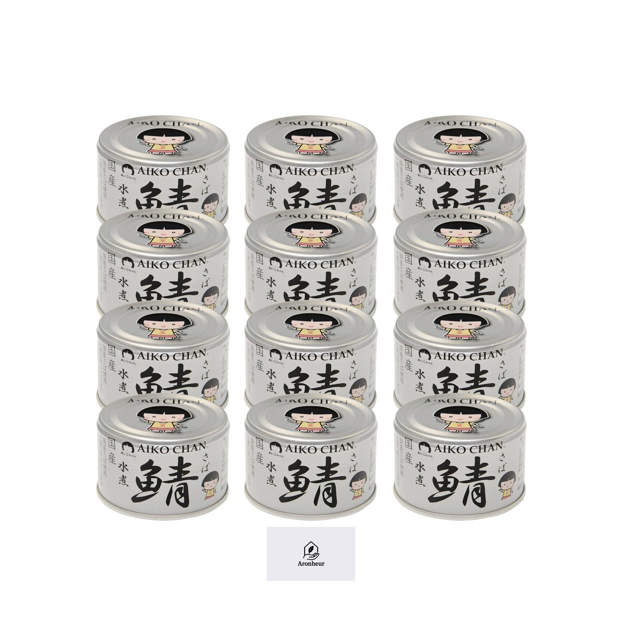 伊藤食品 あいこちゃん 銀の鯖水煮 150g 12缶セット Aronheurオリジナルマスクケース付き