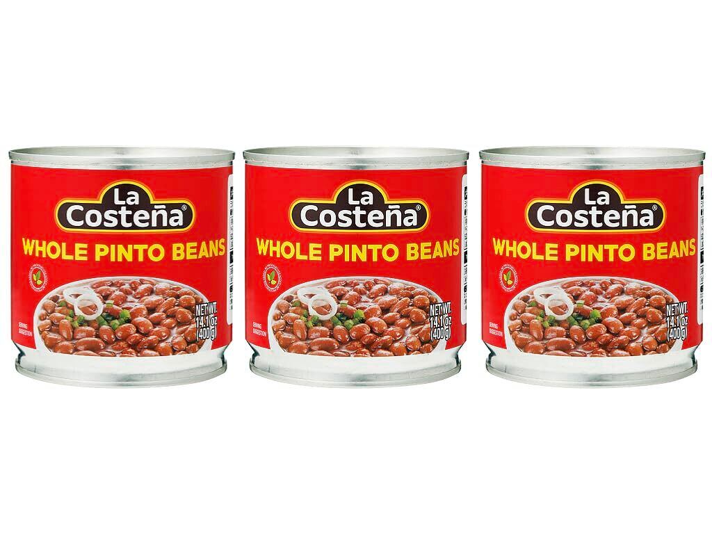 神戸物産 メキシカンビーンズトマト煮込み缶 WHOLE PINTO BEANS La Costena うずら豆のトマト煮込み メキシコ料理 ガーリック タマネギ トマトソース チリコンカン メキシコ (固形量200g 内容総量400g)×3缶
