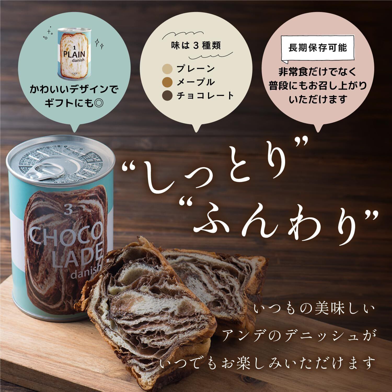 デニッシュ缶 プレーン メープル ショコラ 3種 各4缶 12缶セット 備蓄用 非常食 保存食 アウトドア ギフト お土産 デニッシュ食パン専門店アンデ 【雑誌で紹介されました!】