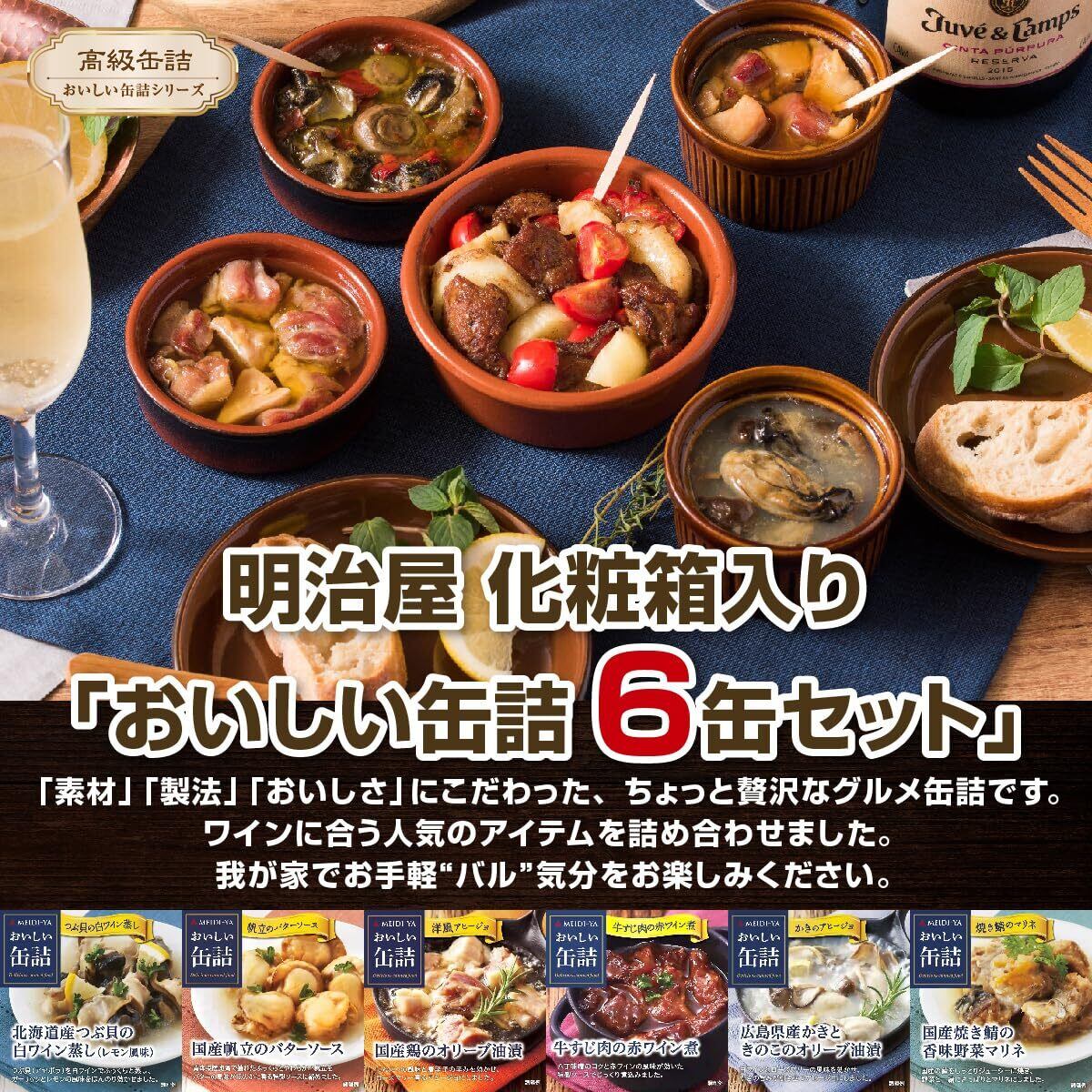 【 明治屋 おいしい缶詰 6種セット 】 缶詰 高級 おつまみ つまみ 惣菜 おかず 人気 6缶 詰め合わせ セット 常温保存 ギフト プレゼント 明治屋 化粧箱 付き お中元