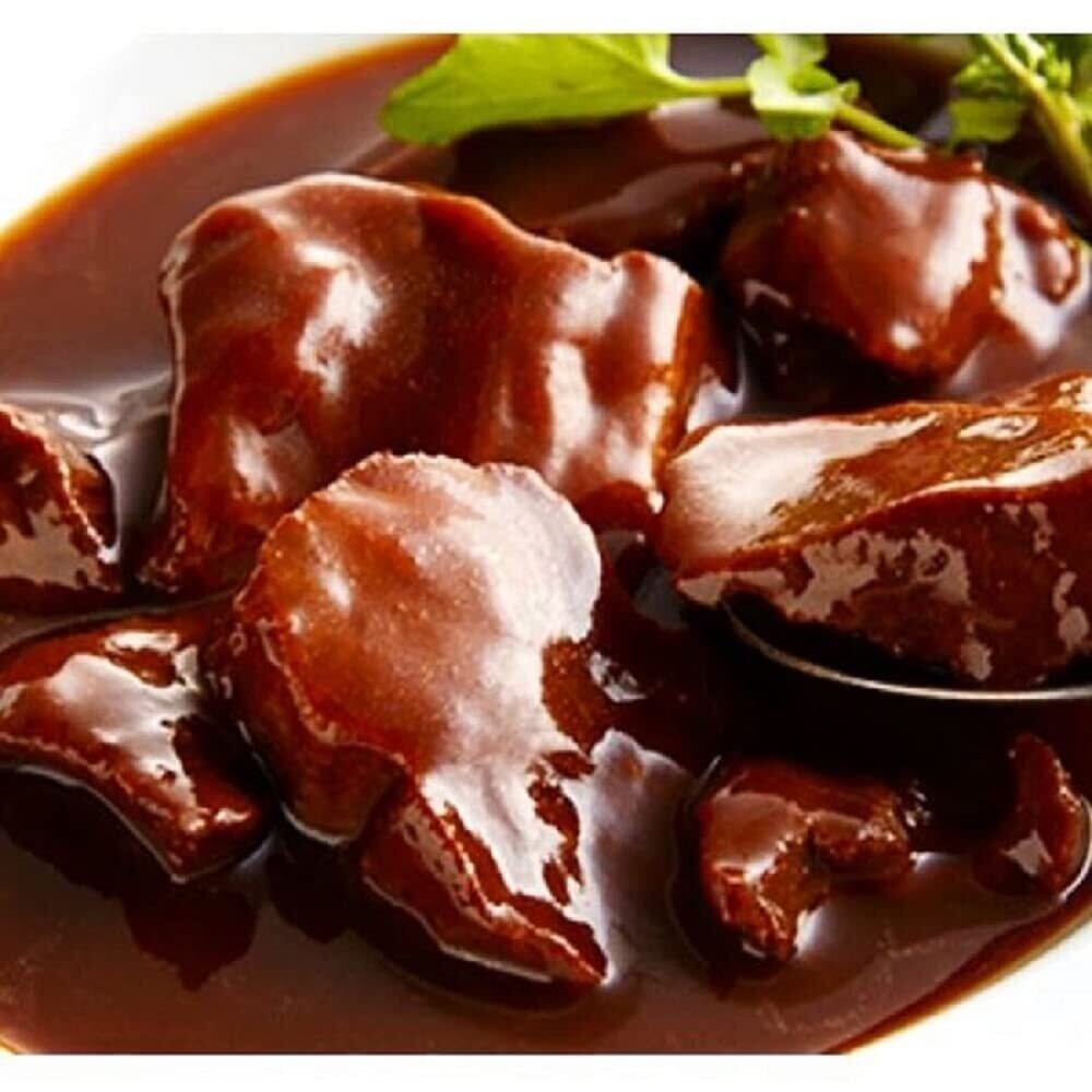 原材料:デミグラスソース(国内製造(野菜ベース、トマトケチャップ、牛脂、その他))、牛タン、発酵調味液、酵母エキス/増粘剤(加工デンプン、カラギナン)、カラメル色素、調味料(アミノ酸等)、乳化剤、(一部に小麦・乳成分・牛肉・鶏肉を含む)