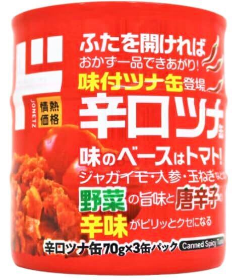 ふたを開ければおかず一品できあがり!味付けツナ缶登場 味のベースはトマト。ジャガイモ・人参・玉ねぎなどの野菜の旨味と 唐辛子のピリッとした辛味がクセになる! 炊き立てご飯に、パスタやサラダにそのままかけてものっけても! チャーハンの具材に使うと、ピリ辛チャーハンに大・変・身!