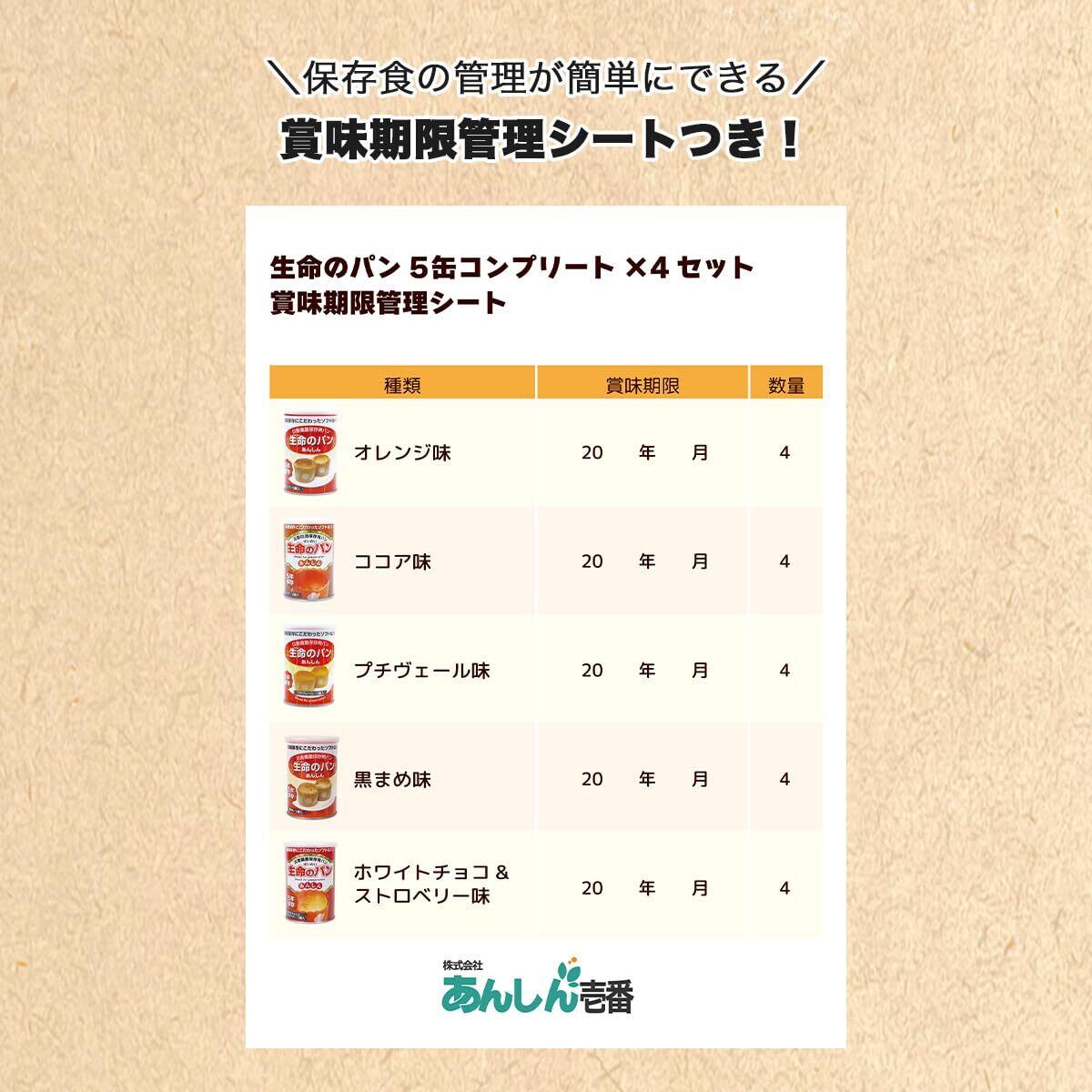 生命のパン 非常食 パン 5年保存 5種類バリエーションセット 各4缶 20缶 保存食 長期保存 非常食セット 缶詰 防災食品 備蓄 防災