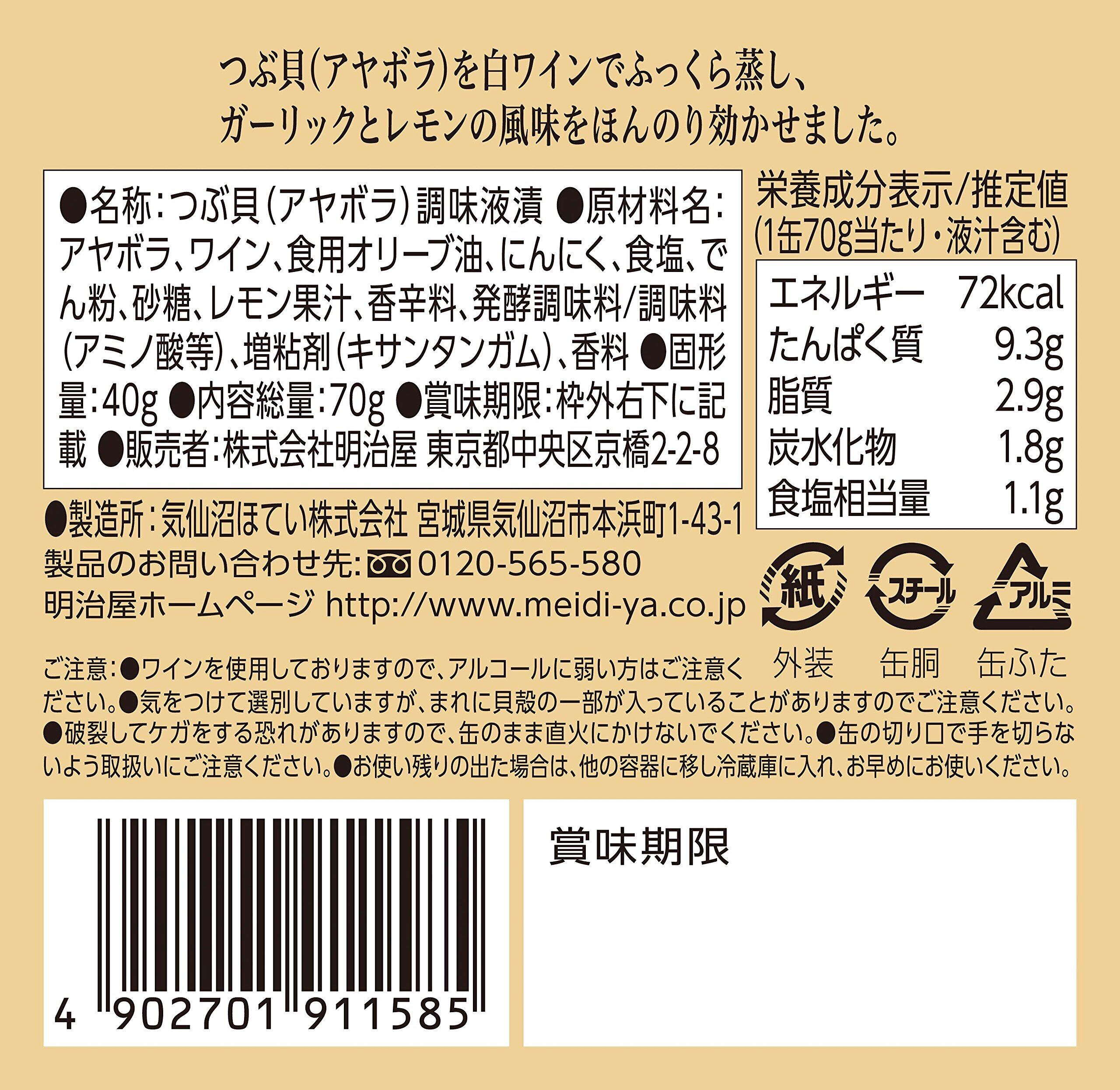 明治屋 おいしい缶詰 北海道産つぶ貝の白ワイン蒸し(レモン風味) 70g (× 4)