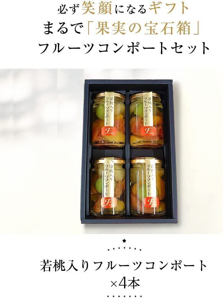 ふみこ農園 お誕生日 プレゼント スイーツ 洋菓子 ギフト 和歌山県産若桃入 フルーツミックスコンポート140g×4本 (バースデイカード付)