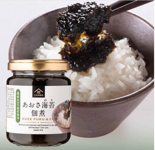 あおさ海苔佃煮:愛知県産の香り豊かなあおさ海苔をふんだんに使い、香りと旨みと食感を残しつつ丁寧に炊き上げた海苔佃煮です。ごはんはもちろん、きゅうりや長芋と和えたり、和風パスタもおすすめ![惣菜・佃煮]