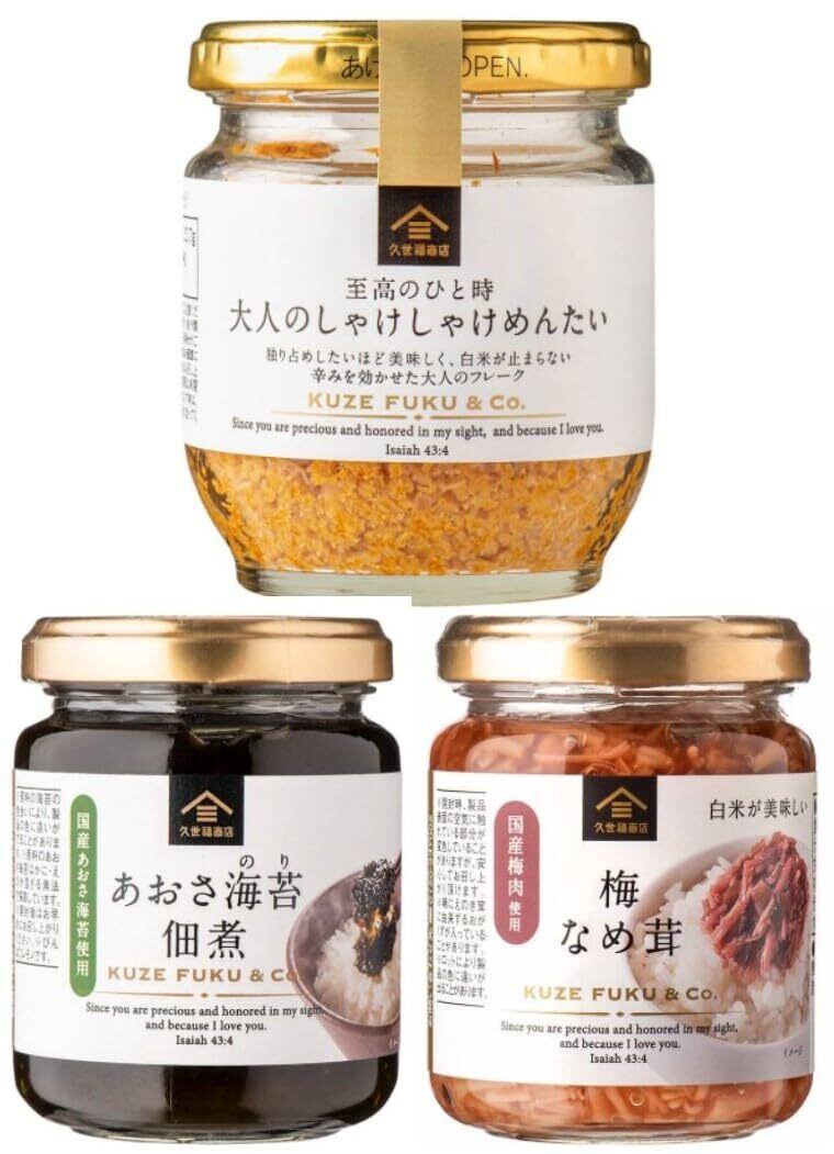 【久 世 福 TV紹介 3点セット】大人のしゃけしゃけ めんたい あおさ海苔佃煮 梅なめ茸 詰め合わせ ご飯のお供