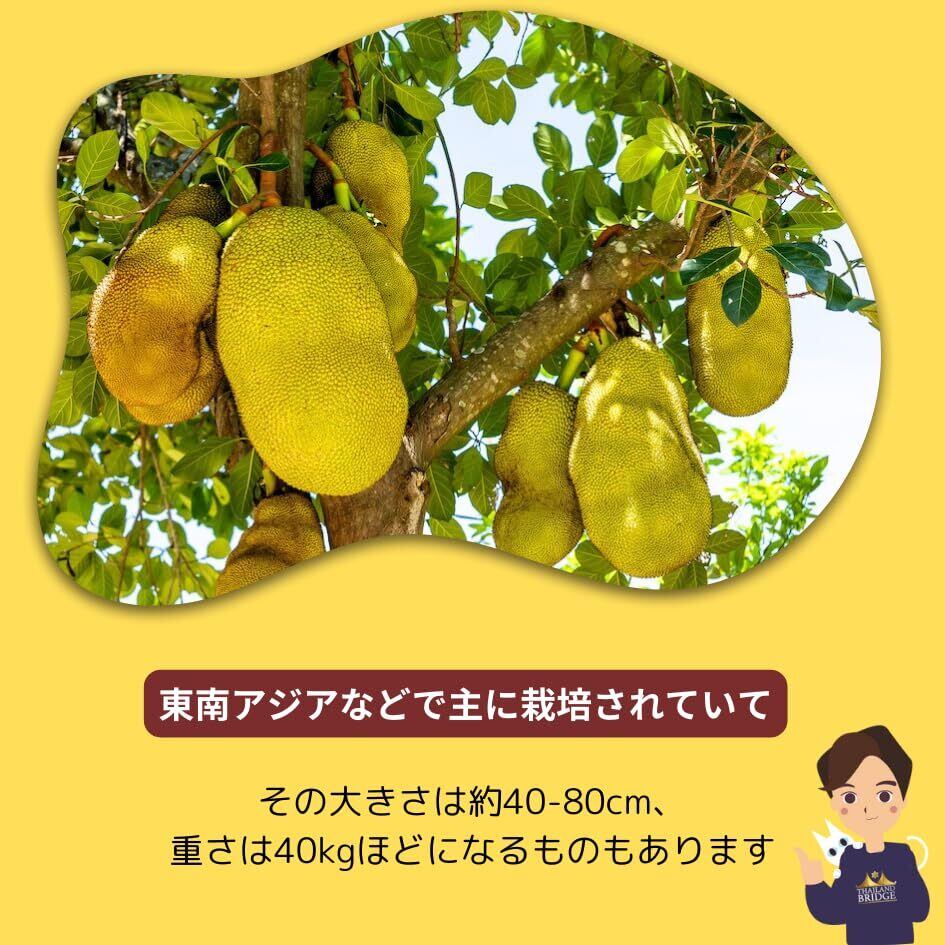 タイ産・ジャックフルーツの缶詰です。 ジャックフルーツの実は、種を抜いたピーマンのような形をしており、パイナップルやバナナのような香りと甘みを持つ南国フルーツです。日本ではなかなか食べる機会の少ないフルーツ、ぜひお試しください。こちらはタイの老舗食品メーカー「ピジョン」が自社農園で栽培した実の中から、厳選した個体だけを製品に使用しています。